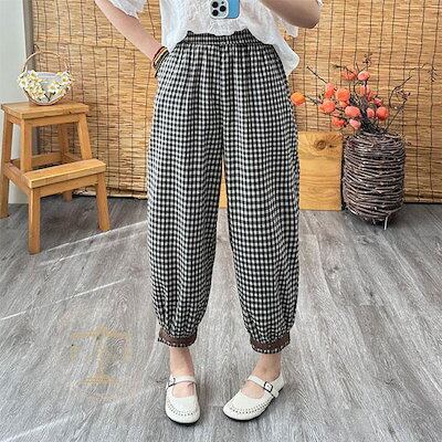 大人気 上品 ギンガムチェック サルエルパンツ 夏 レディース チェック柄パンツ 9分丈 イージーパンツ ゆったり 薄手 サマーパンツ 体型カバー バギーパンツ