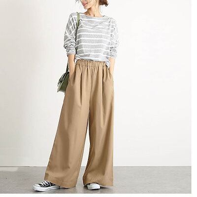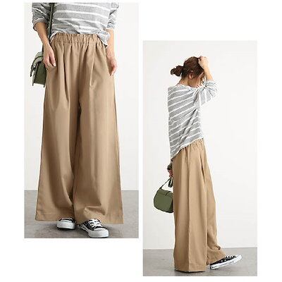 ワイドパンツ レディース 春 夏 きれいめ ボトムス ロング丈 ボトムス ウエストゴム ゆったり バギーパンツ イージー 美脚 体型カバー 大人 カジュアル シンプル 大きいサイズ 通勤 オフィス O