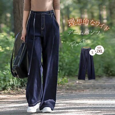 ワイドパンツ デニムパンツ レディース パンツ ジーンズ ジーパン ロング丈 大きいサイズ ゆったり バギーパンツ ボトムス ワイドデニムパンツ 春秋 カジュアル ズボン ロング丈 大きいサイズ 美脚 | gizshop