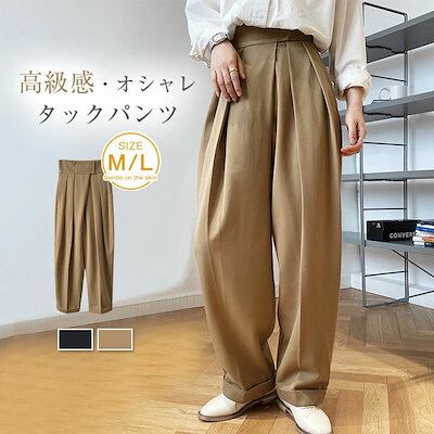 タックワイドパンツ レディース ボトムス パンツ イージーパンツ ワイドパンツ ウエストゴム 秋冬 ゆったり バギー チノパン 大きいサイズ ズボン カジュアル 通勤 仕事 オフィス 事務所 OL 体 | gizshop