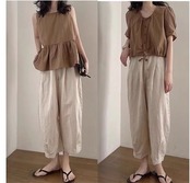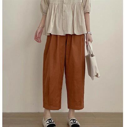 綿麻バルーンパンツ 夏 九分丈 レディース リネン パンツ ワイドパンツ 爽やか ウエストゴム バギーパンツ 大きいサイズ ゆったり リラックス ビーチ 海 爽やか ふんわり 夏 大人可愛い サマー