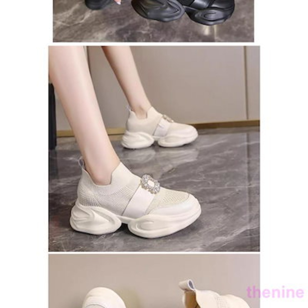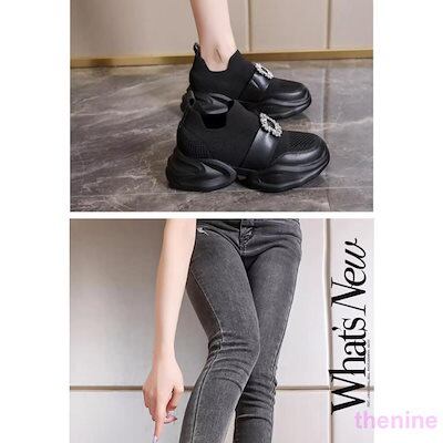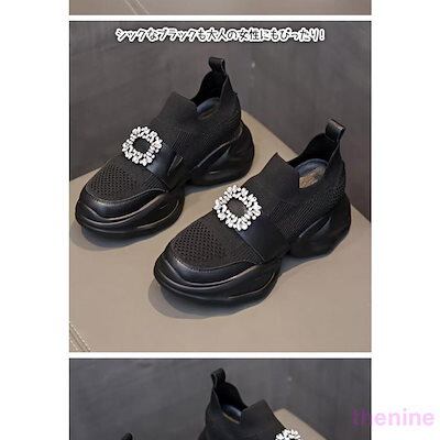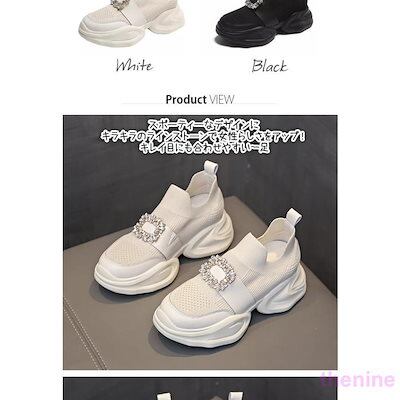 スニーカー スリッポン レディース キラキラ ラインストーン ビジュー キレイ目 厚底 スタイルアップ ホワイト ブラック