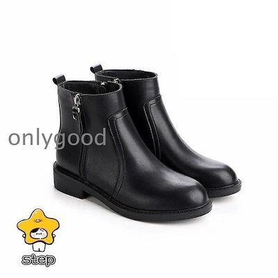 【3日以内出荷】ショート ブーツ レディース 大きいサイズ ショートブーツ サイドジップ ペタンコ ローヒール 歩きやすい 痛くない 脚長 防寒 秋冬 ボア PU ブラック 黒 通勤 | gizshop