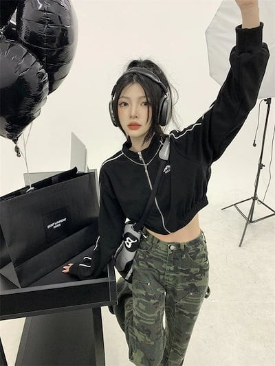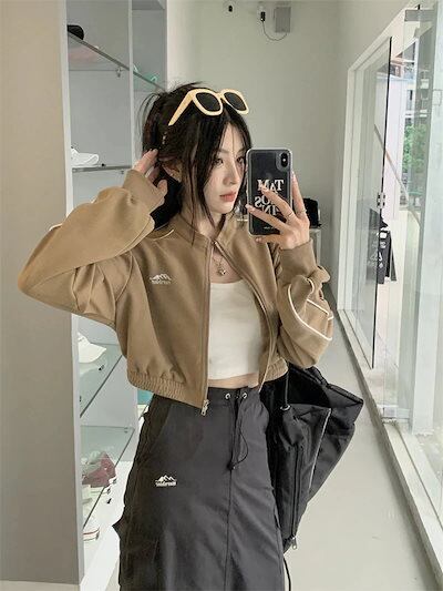 2024 秋 韓国 かわいい レディース アウター スポーティー ブルゾン リラックス お出かけ アウター 長袖セクシートップスネックサイド冬カジュアルファッション系お出かけフル丈トラック | gizshop