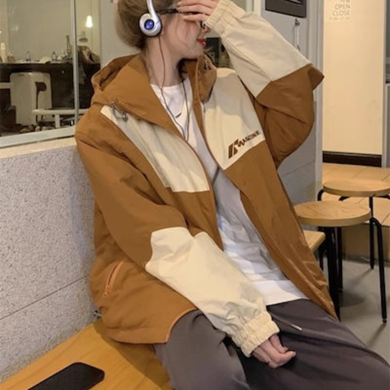 カラーブロック ナイロンジャケット レディース 韓国 ファッション ジップアップ ロゴ ナイロンパーカー ナイロンジャケット