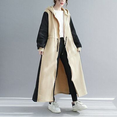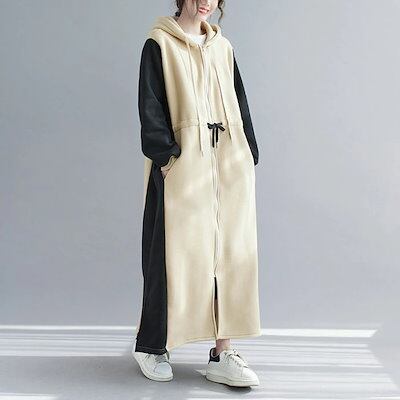 ワンピース レディース キレイめ ロングワンピース体型カバー 配色 秋冬 ゆったり 通勤 女性 長袖 ファスナー マキシ丈 ワンピ カジュアル ベーシック 着痩せ ポケット付き フード付き お洒落 大 | gizshop