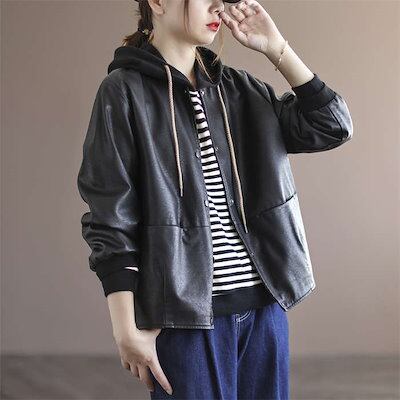 ジャケット レディース トップス スタジャン ジャンパー レザージャケット リブ襟 PU 上着 春 秋 長袖 無地 ポケット アウター コート スタンドカラー 皮ジャン 本革ジャケット シンプル ゆっ | gizshop