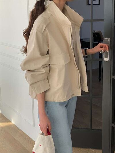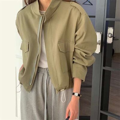 春秋アウター レディース ジャケット アウター レディース スタンドカラー マウンテン 春 長袖 無地 モッズジャケット ポケット ジップアップ 羽織り 秋コート ミリタリー トレンド ショート丈 | gizshop