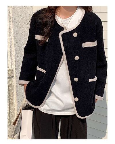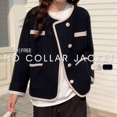 ノーカラージャケット レディース 秋冬 厚手 長袖 ジャケット クルーネック ノーカラー コート アウター ライトアウター きれいめ ポケット付き ショート丈 無地 ゆったり 体型カバー 暖かい 大人 | gizshop