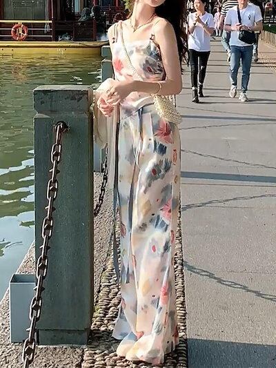 パンツ レディース オールインワン ワイドパンツ ストレートパンツ ロング丈 マキシ丈 袖なし ノースリーブ ノースリ 襟なし スクエアネック ストレート ワイド スリム 細身 ハイウエスト 薄手 | gizshop