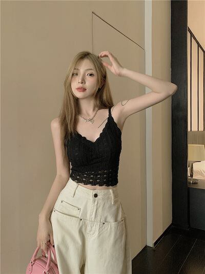 トップス レディース インナー キャミソール ショート ショート丈 ノースリーブ スリム タイト 韓国 細身 レース かわいい 大人可愛い きれいめ フェミニン おしゃれ お洒落 セクシー おとな | gizshop