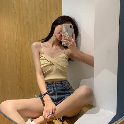 トップス レディース キャミソール ミニ 韓国 ショート丈 7色 デザイン ノースリーブ タイト かわいい 大人可愛い シンプル カジュアル クール セクシー ナチュラル こなれ感 ラフ ボーイッシュ | gizshop