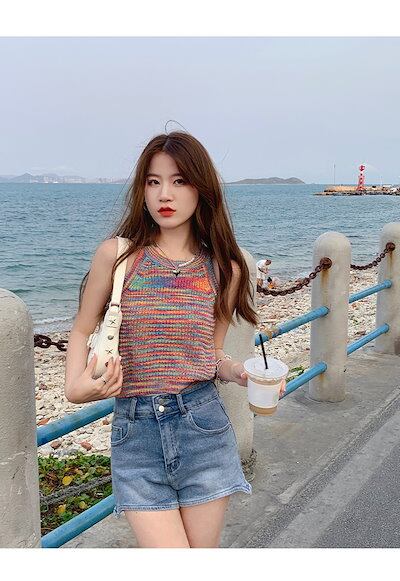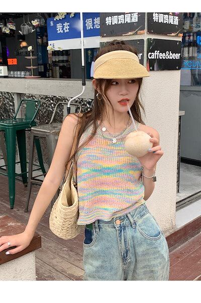 トップス レディース タンクトップ ノースリーブ 韓国 サマーニット スクエアネック スリム 細身 かわいい 大人可愛い きれいめ シンプル カジュアル おしゃれ 綺麗 かっこいい クール セクシー | gizshop