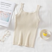 タンクトップ レディース リブニットスクエアネックタンクトップ ノースリーブ ショート丈 ニット トップス カットソー サマーニット インナー 袖なし ニットソー キャミソール ブルー イエロー | gizshop