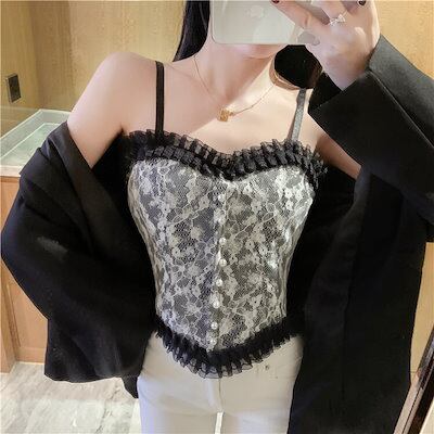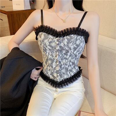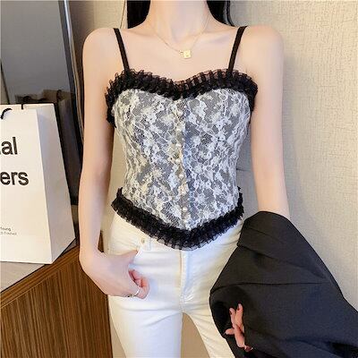 トップス レディース インナー キャミソール 韓国 ショート ショート丈 ノースリーブ スリム タイト 細身 レース かわいい 大人可愛い きれいめ 上品 エレガント フェミニン おしゃれ お洒落 | gizshop