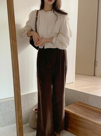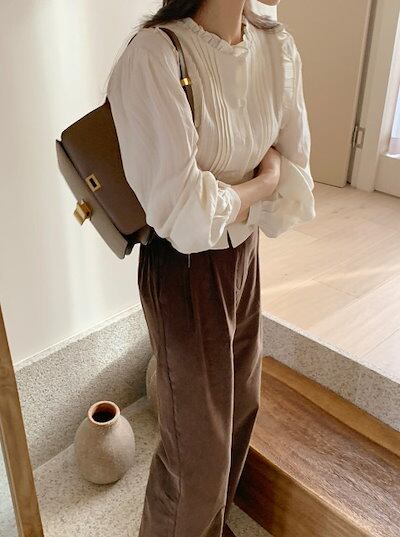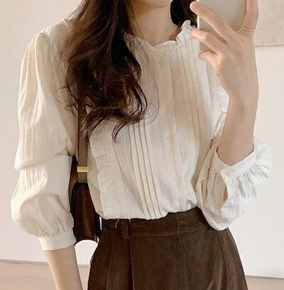 フリル襟ブラウス ブラウス レディース トップス 長袖 シャツブラウス レディース プリーツ ブラウス