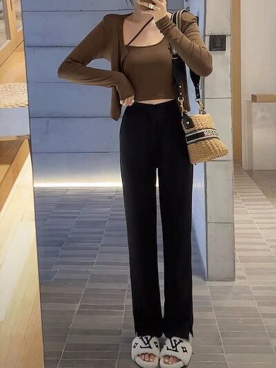 トップス レディース カーディガン キャミソール クロップド クロップド丈 ミニ丈 ショート丈 長袖 ノースリーブ 襟なし デコルテ デコルテ開き 細身 スリム 2点セット お得 かわいい 大人可愛い | gizshop