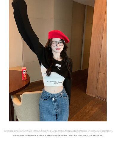 トップス レディース レイヤード トレーナー キャミソール キャミ クロップド丈 クロップド 長袖 プルオーバー 2点セット ワンポイント チェーン ショート丈 美シルエット 女性用 個性的 | gizshop