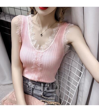 キャミソール レディース ノースリーブ フリル レース リブ フェミニン ガーリー セクシー かわいい 大人可愛い きれいめ 無地 夏 学生 デート イベント ホワイト ピンク ブラック トップス | gizshop
