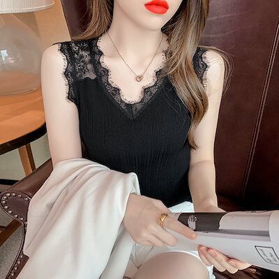 キャミソール レディース ノースリーブ レース リブ フリル セクシー ガーリー かわいい 大人可愛い きれいめ カジュアル 無地 夏 学生 デート 普段使い ホワイト ブラック トップス | gizshop