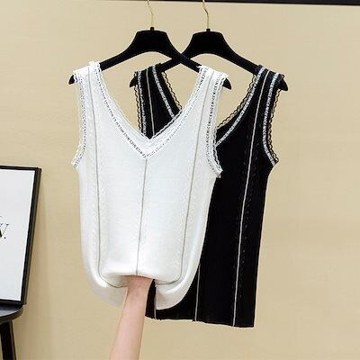 夏でも着れる!サマーニットトップスノースリーブ タンクトップ夏服レディースキャミソールインナー韓国ファッションTシャツ