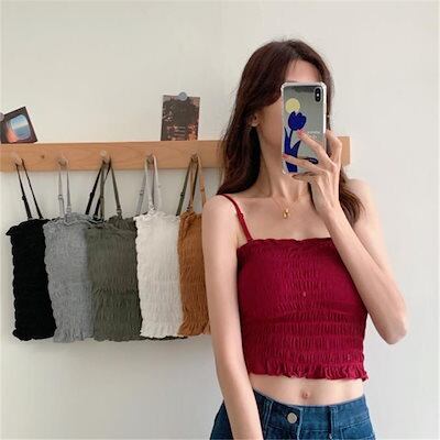 サスペンダーレディースオールマッチ無地菌レースラップチェストトップしわ短い美しいバックアウターウェア