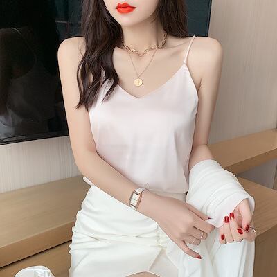 トップス レディース キャミソール シルクサテン ショート ショート丈 清楚 バックコンシャス