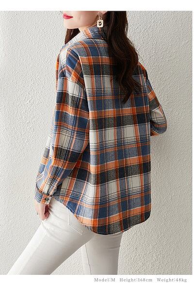 ブラウス コットン シャツブラウス ブラウス 羽織り ポロ カジュアルトップス レトロ ネルシャツ レギュラー襟 レディース 学生 シャツ 通勤 秋 長袖 通学 シャツ オーバーサイズ シャツ 可愛い | gizshop