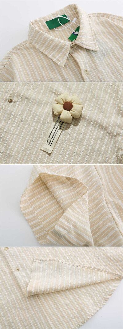 100%綿 コットン シャツ ブラウス ストライプ 新作 レディース 花 半袖 シャツ襟 デザイン感 前開き シャツブラウス トップス 体型カバー ゆったり 着痩せ 通勤 OL オフィス 春 夏 レト | gizshop