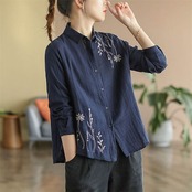 コットン100% シャツブラウス レディース 折り襟 シャツ ブラウス 長袖 トップス 羽織り ギャザー カジュアル 花柄 刺繍 無地 大きいサイズ 体型カバー ゆったり 通勤 シンプル 通気性 大き