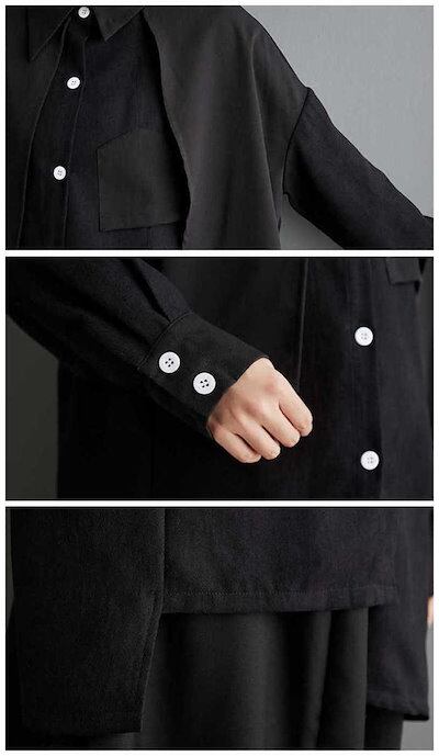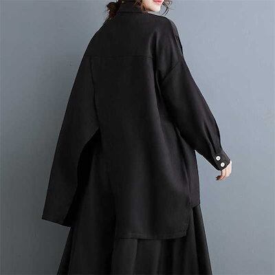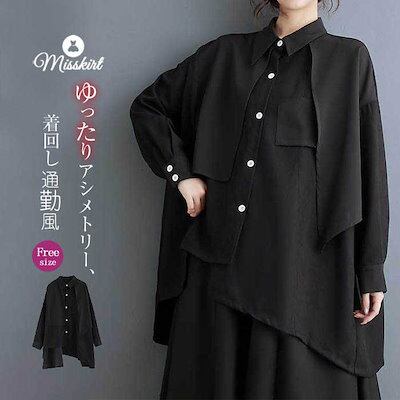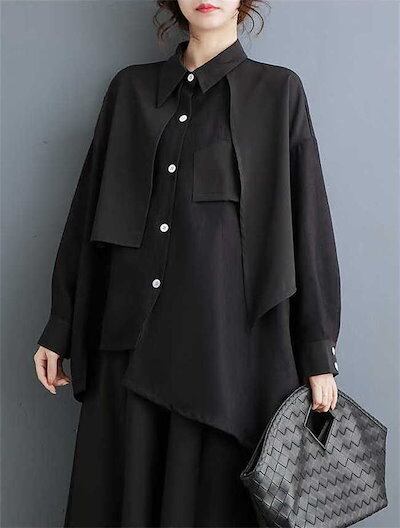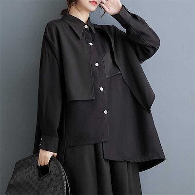 シャツ ブラウス トップス レディース シャツブラウス アシンメトリー 新作 春 秋 長袖 切り替え 無地 デザイン感 ゆったり 着?せ 体型カバー シャツ襟 ボタン 大きいサイズ カジュアル おしゃ | gizshop