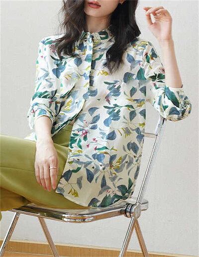 シャツ ブラウス レディース シャツブラウス トップス ゆったり 長袖 油絵感 デザイン感 着痩せ プリント 折り襟 前開き 花柄 シャツ袖 ボタン オフィス 通勤 OL ビジネス おしゃれ 大人 エ | gizshop