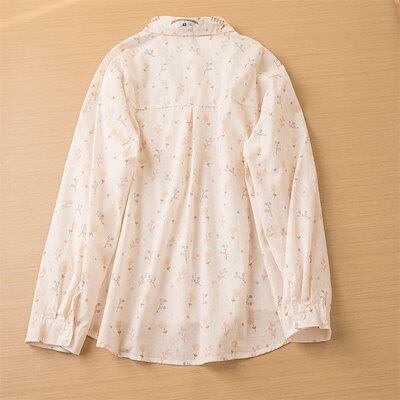 綿 コットン シャツ ブラウス レディース 新作 刺繍 花柄 プリント 長袖 トップス 折り襟 シャツブラウス 前開き 羽織り ゆったり カジュアル エレガント 体型カバー 通勤 OL オフィス 森ガ | gizshop