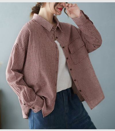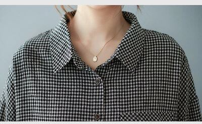 シャツ ブラウス トップス レディース 長袖 チェック柄 長袖シャツ リネン シャツブラウス 秋 コットン ゆったり 大きいサイズ 体型カバー カットソー 重ね着 折り襟 ボタン留め おしゃれ 前開き | gizshop