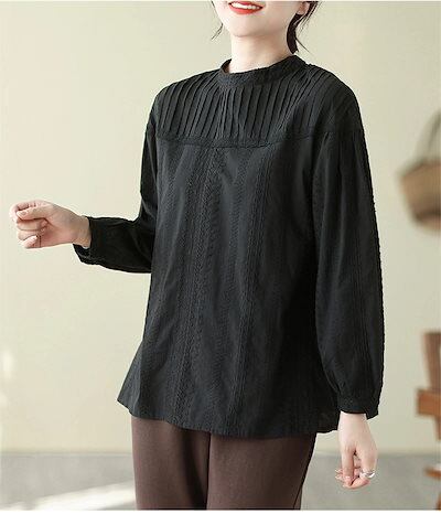 チュニック シャツ 刺繍シャツ 長袖 ブラウス レディース ギャザー 春 夏 シャツブラウス 立ち襟 刺繍 長袖 丸首 後ろボタン 通勤シャツ トップス ゆったり ハイネック 森ガール 吸湿 柔らかい