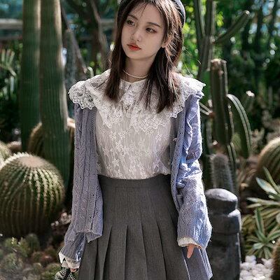 レディース セット トップス 長袖 大きめ襟 フリル 刺繍 レース シャツ カーディガン 透け感 春秋 レトロ カジュアル 大人可愛い 大人ガーリー フェミニン 学生 甘口コーデ お出かけ デート | gizshop