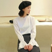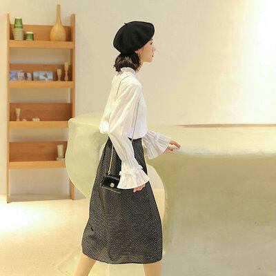 レディース ブラウス 立ち襟 フリル キャンディスリーブ トップス 長袖 カジュアル 可愛い フェミニン きれいめ 上品 エレガント おしゃれ お出かけ オフィス デート ホワイト 白 S M L サ | gizshop