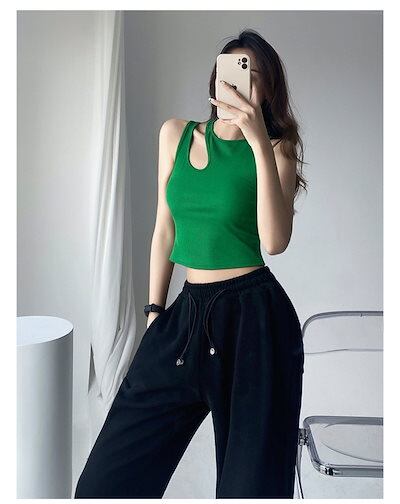 ノースリーブ レディース トップス カットソー プルオーバー タンクトップ ショート丈 袖なし クルーネック 襟なし タイト スリム 細身 肌見せ 大人可愛い きれいめ シンプル カジュアル おしゃれ | gizshop