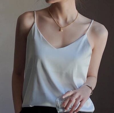 レディース トップス キャミソール インナー 袖なし ノースリーブ Vネック フェミニン きれいめ シンプル 上品 おしゃれ レトロ こなれ感 エレガント モダン とろみ感 抜け感 都会的 | gizshop
