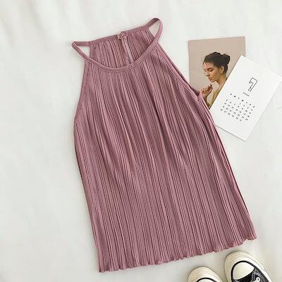レディース トップス キャミソール インナー タンクトップ 袖なし ノースリーブ ラウンドネック ホルターネック フェミニン プリーツ かわいい 大人可愛い きれいめ シンプル ガーリー ラブリー | gizshop