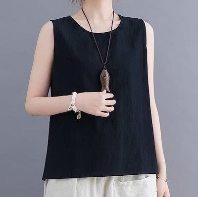 レディース トップス タンクトップ 袖なし ノースリーブ Uネック フェミニン ストリート リネン 麻 かわいい 大人可愛い きれいめ シンプル カジュアル 上品 おしゃれ レトロ アジアン