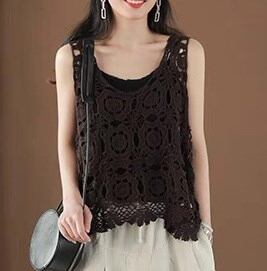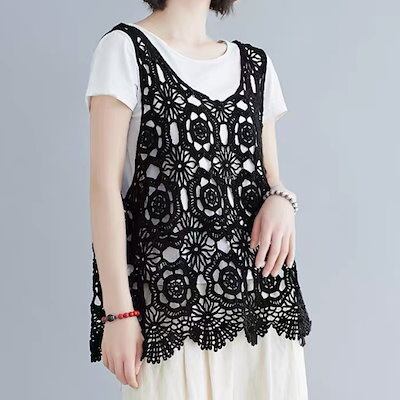 レディース トップス キャミソール タンクトップ 袖なし ノースリーブ Uネック クロシェ 編み込み 透け感 シースルー ヴィンテージ アメカジ かわいい 大人可愛い カジュアル おしゃれ レトロ | gizshop