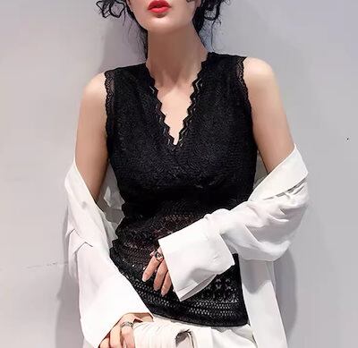 レディース トップス カットソー タンクトップ ノースリーブ Vネック タイト スリム 細身 フェミニン ストリート レース リボン コンサバ 薄手 かわいい 大人可愛い きれいめ シンプル | gizshop