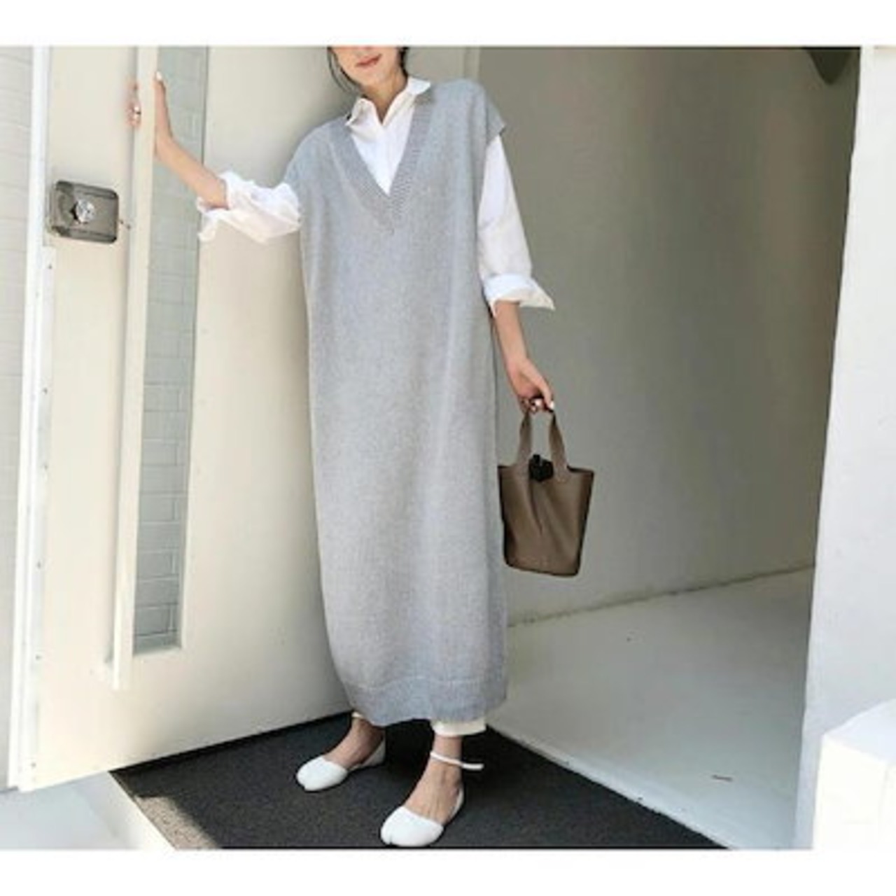 Chio'2ndベストニットベストロングベストレディースニットワンピースワンピース春秋冬秋秋袖なしVネックロング丈マキシ無地シンプルコーデゆったり着回し