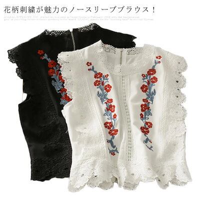 Chio'2ndタンクトップレディース花柄刺?レースブラウストップスノースリlーブブラウス透かしフリル袖Uネック薄ノースリーブブラウス大人通気性かわいいカジュアルシンプルゆったりおしゃれプルオーバーフェミニンエレガン | gizshop