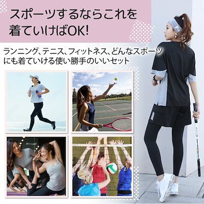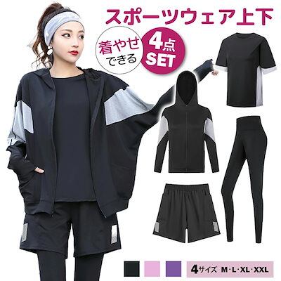 スポーツウェア レディース 4点セット 上下セット 長袖 半袖 体型カバー 女性 フィットネス ヨガ UVカット 大きいサイズ スポーツ トレーニング セパレート レギンス ピラティス ウォーキング | gizshop