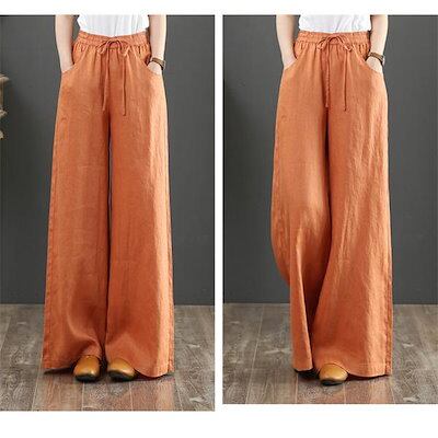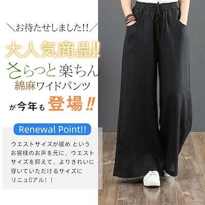 超人気 ワイドパンツ レディース チノパン リネン バギーパンツ ガウチョパンツ ズボン ロング ワイドパンツルック 綿麻 大きいサイズ リラックス 美脚