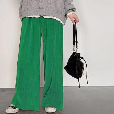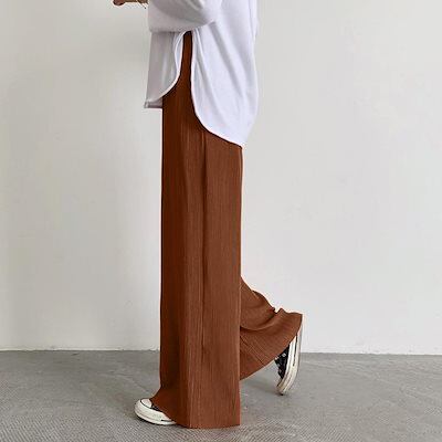 プリーツパンツ レディース ワイドパンツ 春 夏 秋 セルフカット 大人カジュアル バギーパンツ ボトムス リラックス フレアパンツ ゆったり