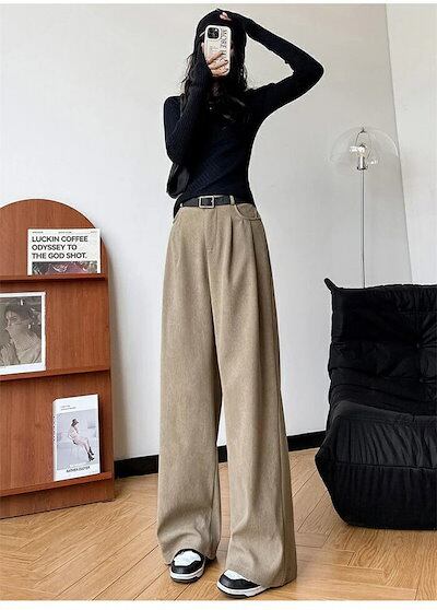 秋冬 通学 レディース ロングパンツ 体型カバー カジュアル ワイドパンツ 裏起毛パンツ ゆったり ボトムス ウエストゴム 裏ボア コーデュロイパンツ 美脚 イージーパンツ 暖い 防寒 バギーパンツ | gizshop