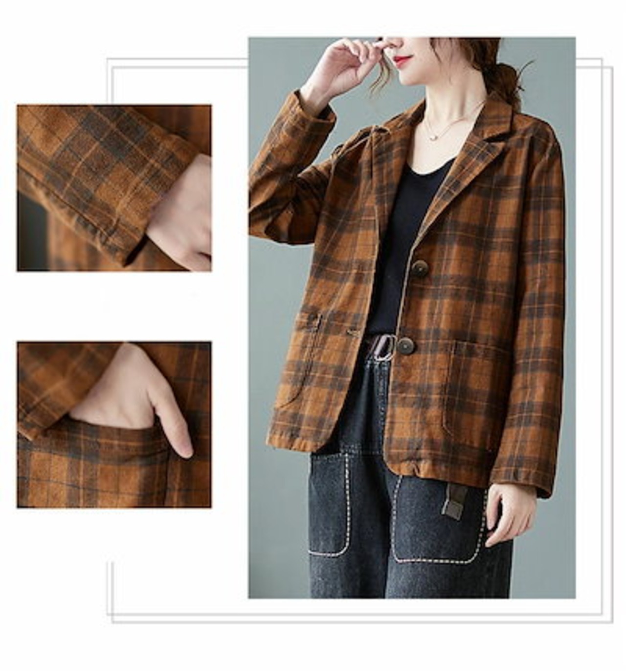 テーラードジャケット チェック レディース 秋 春 大きいサイズ スーツ チェックジャケット トップス アウター コート 羽織 ゆったり カジュアル 大人 通勤 OL ビジネス カジュアル 体型カバー